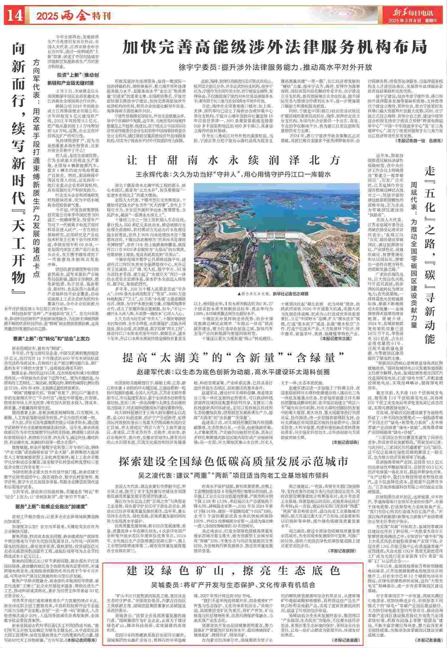 吳城委員接受新華社采訪:建設綠色礦山,擦亮生態底色